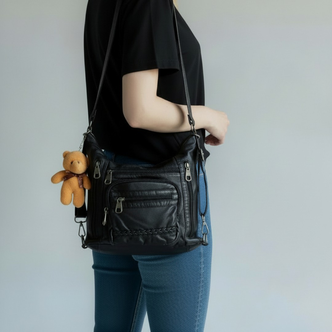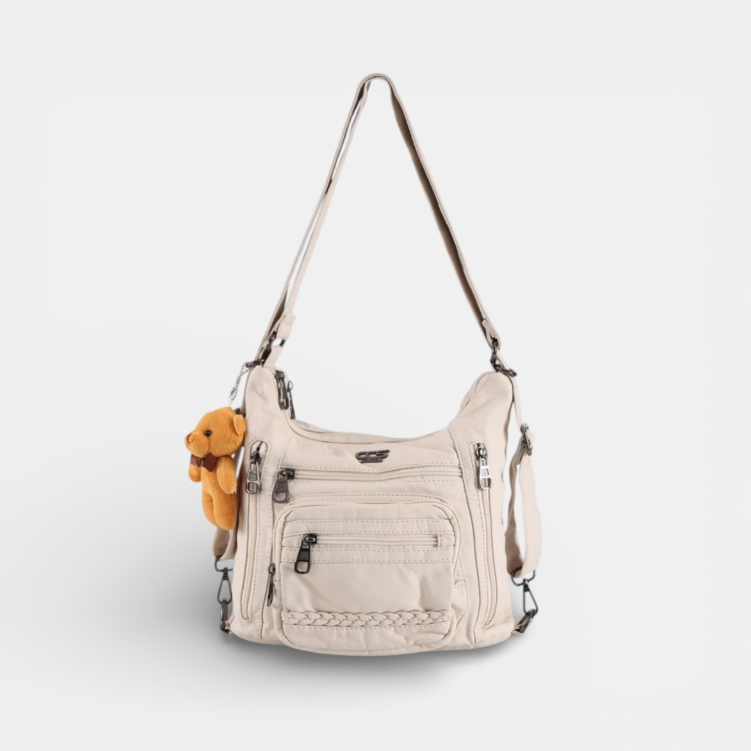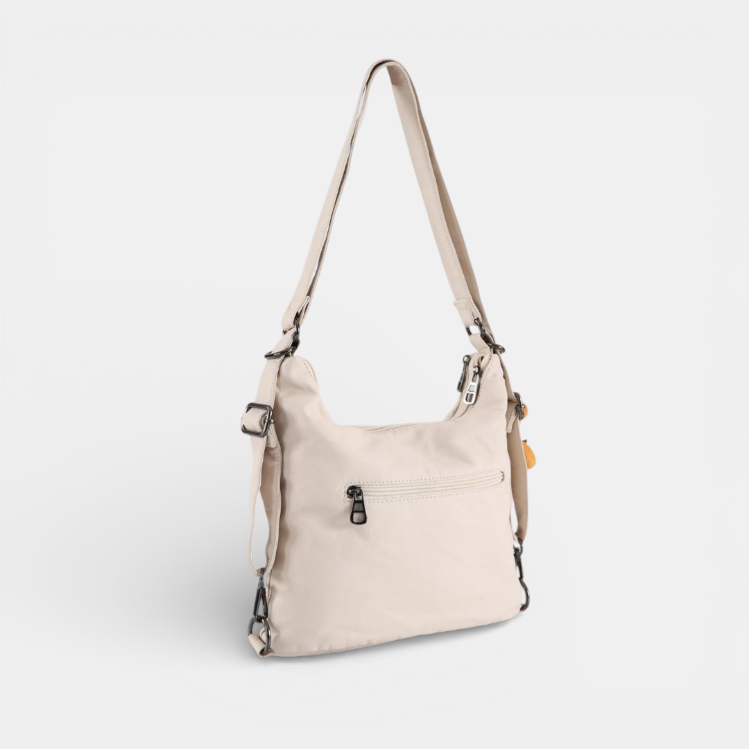 Model, hem omuz çantası hem de sırt çantası olarak kullanılabilen çok yönlü tasarımıyla öne çıkar. Ayarlanabilir askıları sayesinde kullanım şeklinizi ihtiyacınıza göre kolayca değiştirebilirsiniz. Günlük kombinlerden şehir hayatının temposuna kadar her ortamda rahatlıkla eşlik eder.