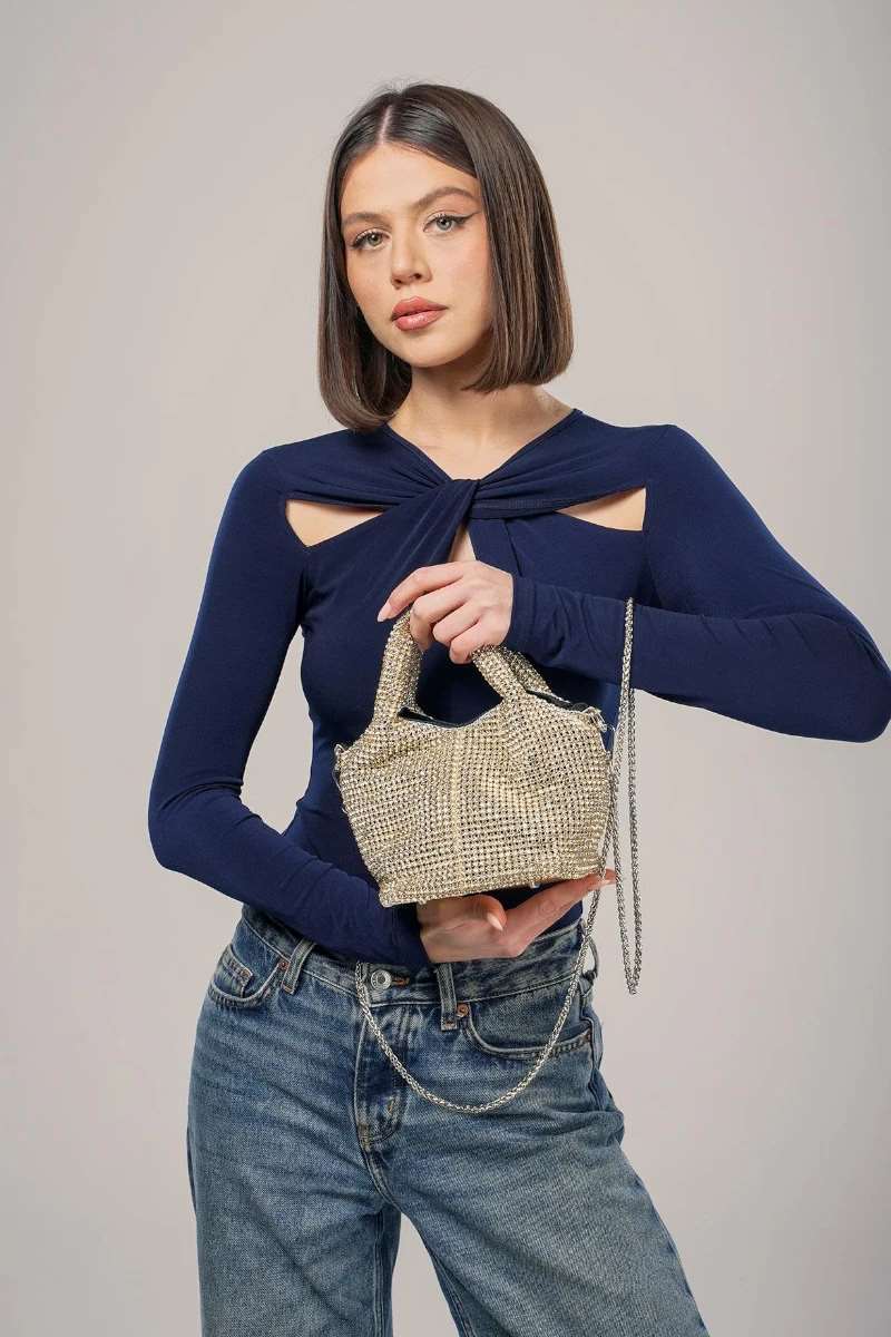 Göz Alıcı Taş İşçiliği: Çantanın tüm yüzeyini kaplayan kristal taş detayları, el işçiliği zarafetinde olup düşmeye karşı dayanıklı ve lüks bir dokuya sahiptir.