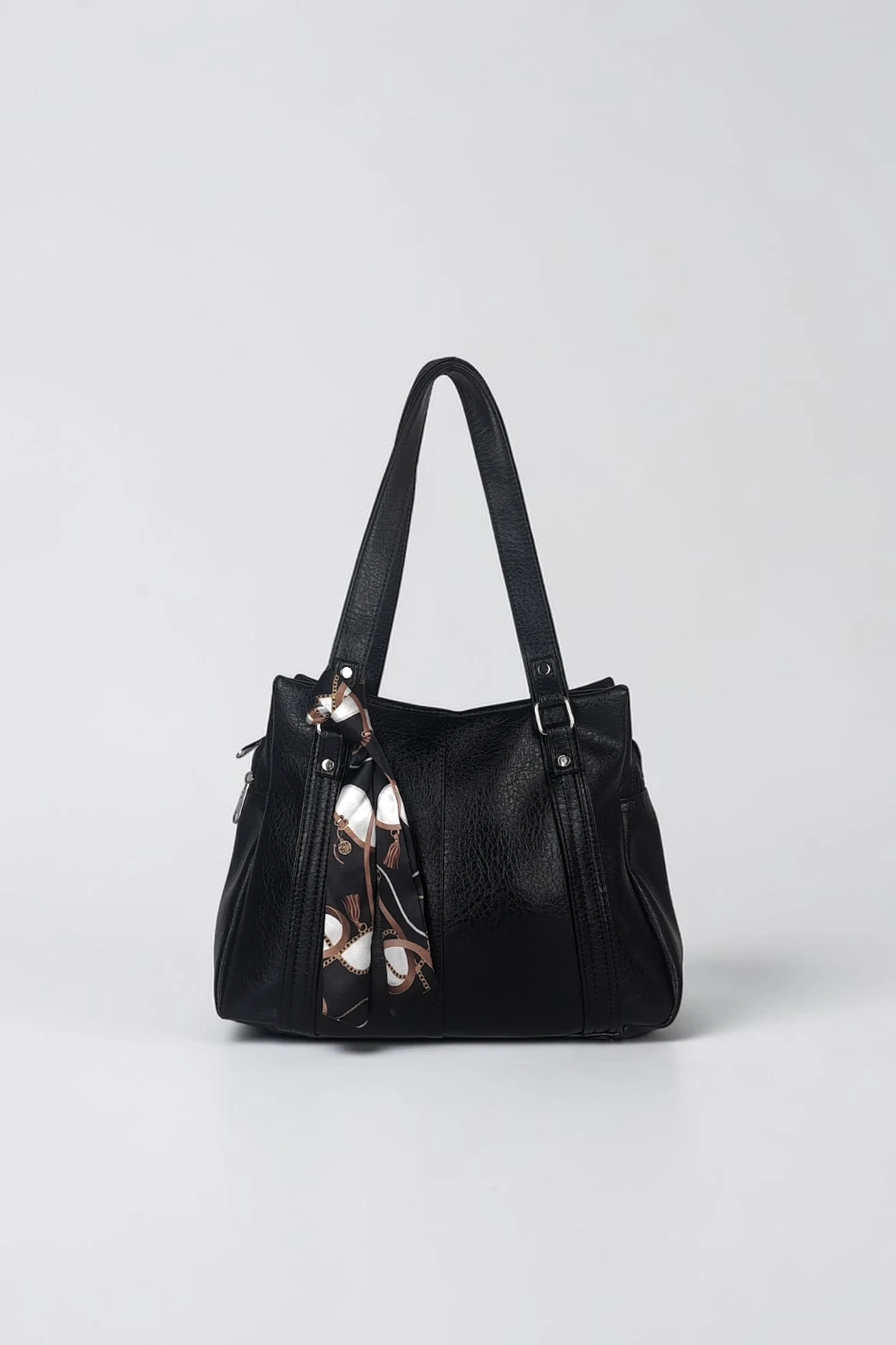 ✨ Estetik Tasarım: Yumuşak deri dokusu ve zarif fular aksesuarıyla sofistike şıklık.